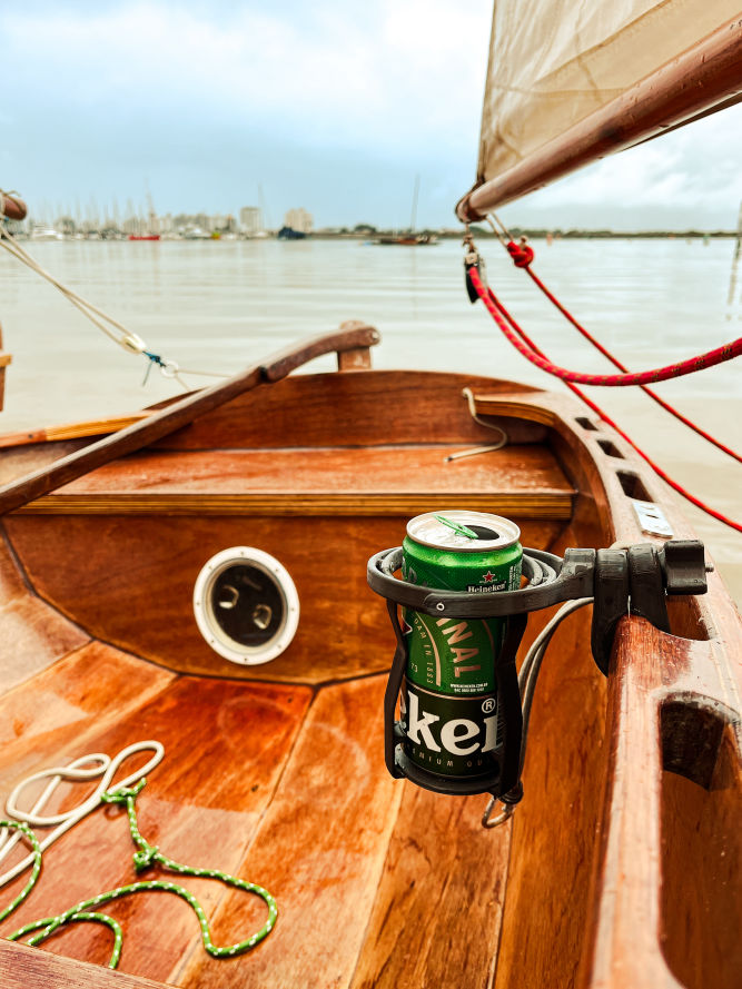 Cabe latas tamanho padrão e slim. Perfeito pra não perder uma gota da sua bebida em alto mar.
