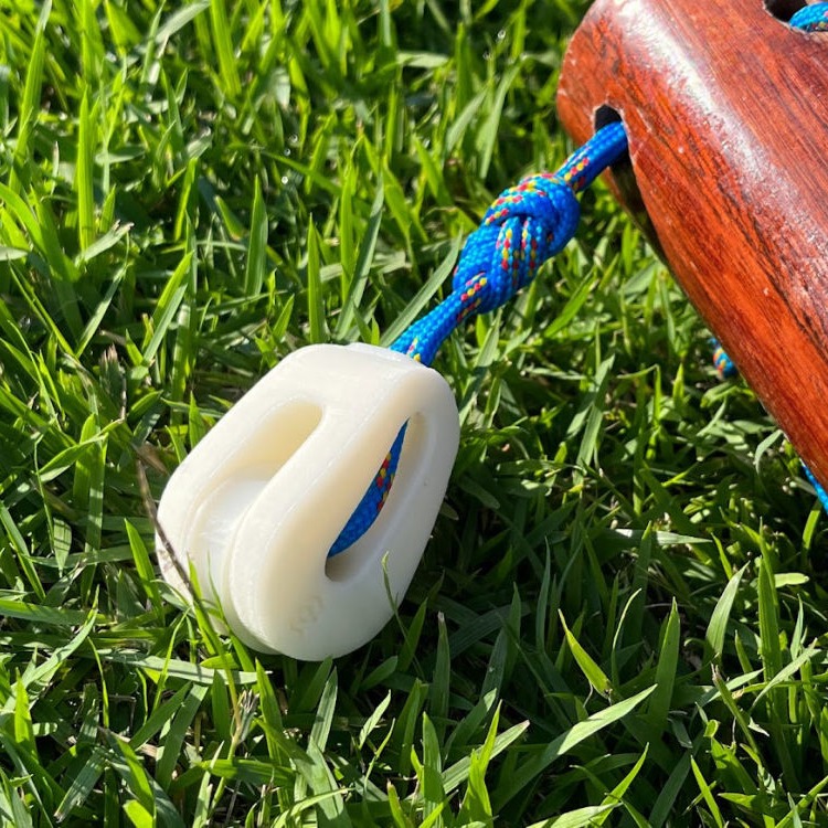 O moitão concha é feito inteiramente de ABS em sua fabricação. Um simples cabo segura a roldana com o rolamento plástico e assim garante o seu pleno funcionamento.